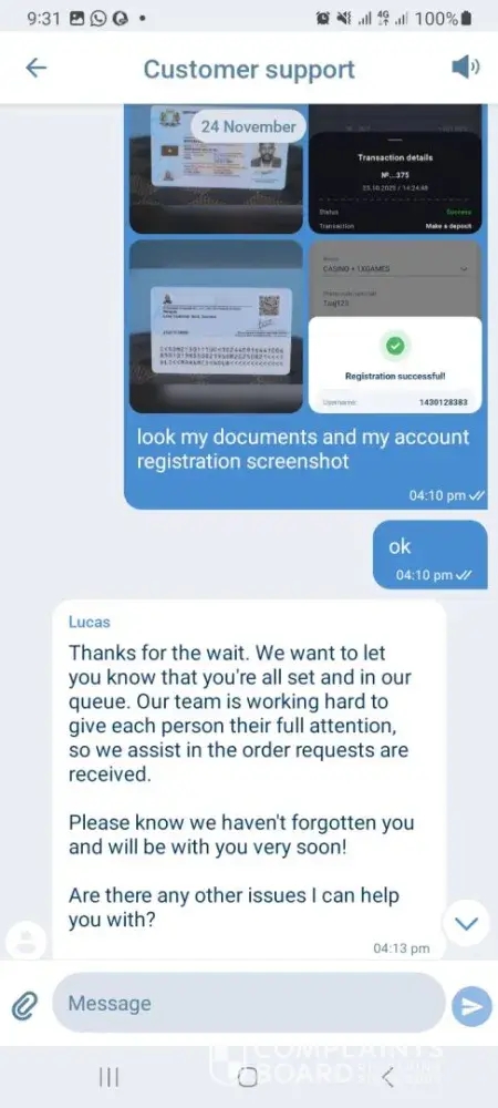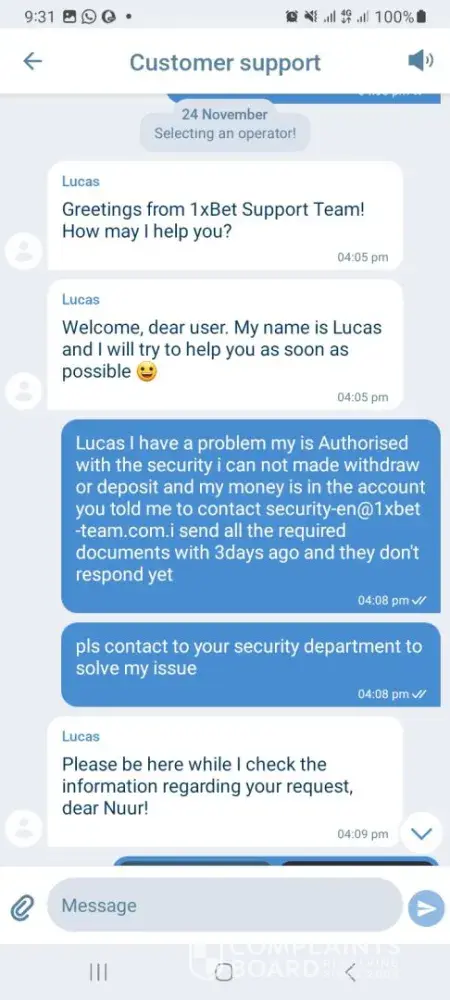 1xbet supporters my complaint is not resolved yet pls solve my complaint