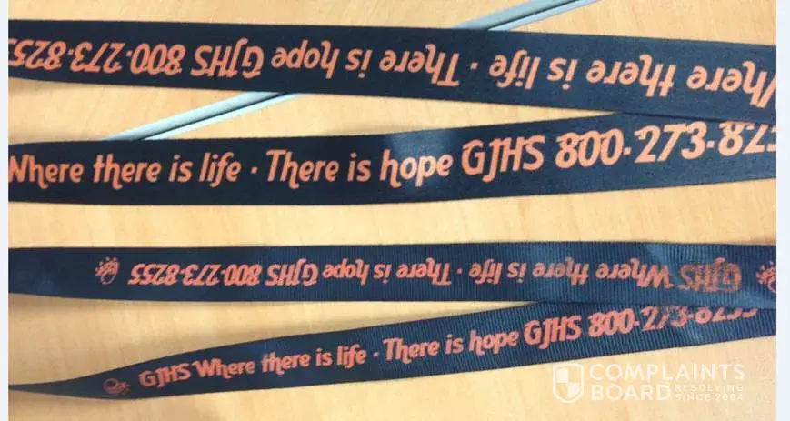 Let me first explain why these lanyards are so important. On 11/02/16 a junior at Grand Junction High School committed suicide by shooting himself in the parking lot of the school. Before that on 08/12/16 a senior committed suicide by jumping off a cliff. This school has dealt with two teen suicides in less than 3 months. My son, who is a senior, has a goal to get these lanyards with the suicide phone number to every student possible. The first 100 we ordered were great and went very fast, which is why I did 24 hour production and overnight shipping. For the lanyards to come to us today and looking the way they did was very upsetting. Then to have to deal with the customer services nonchalant attitude was not ok. Customer service was useless and now I am out $313.15...NEVER AGAIN! Who thought you would have to check reviews for something as simple as lanyards!
