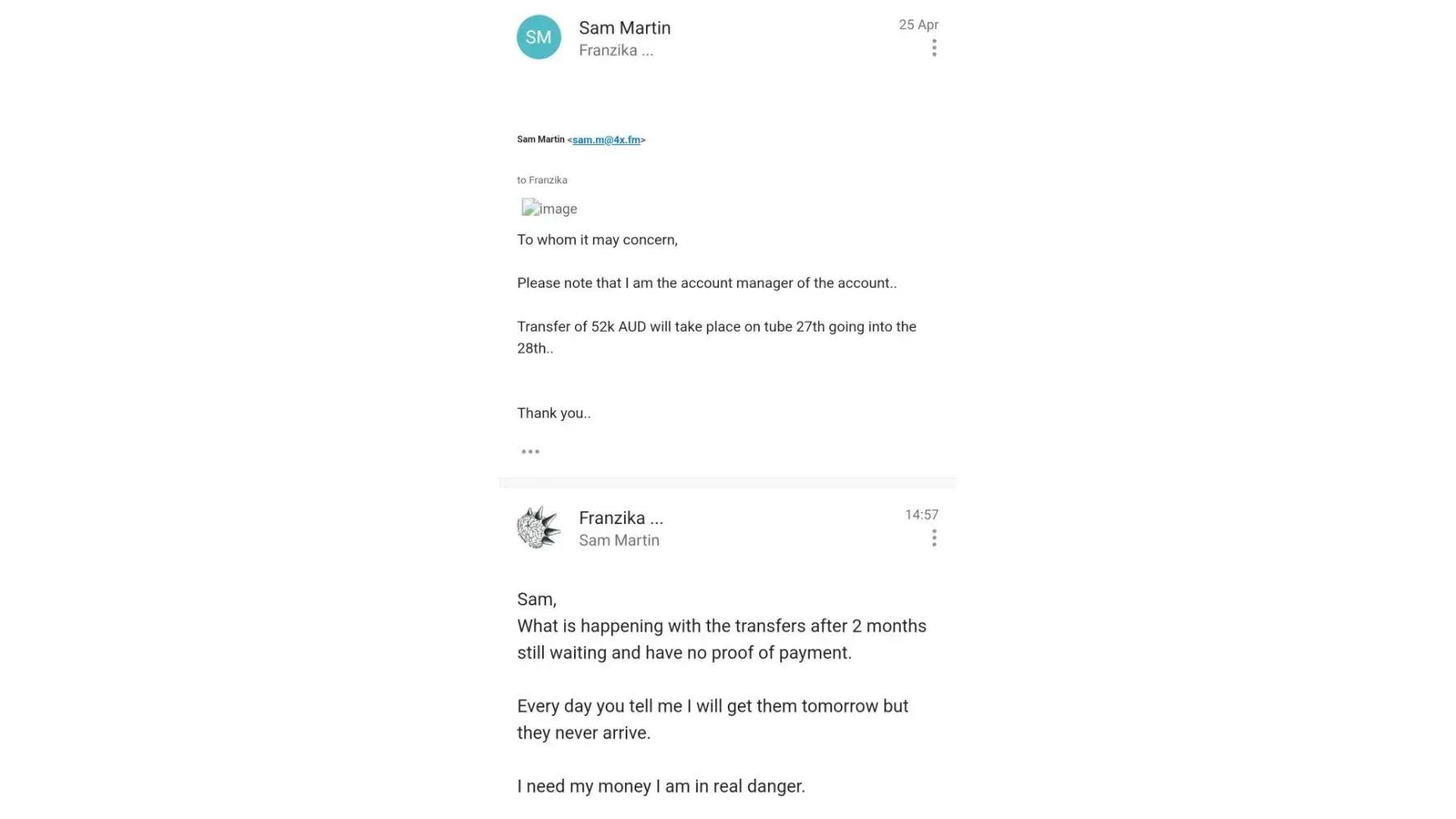 I had a very knowledgeable account manager that I trusted with my money. I thought we had built a good relationship over the several months that we were in contact. However, his (Sam Martin) character changed when I requested to make a withdrawal. I had excuse after excuse as to why my transfer of funds had not taken place. I resorted to writing a review on another platform about my negative experience and gave a one star rating.