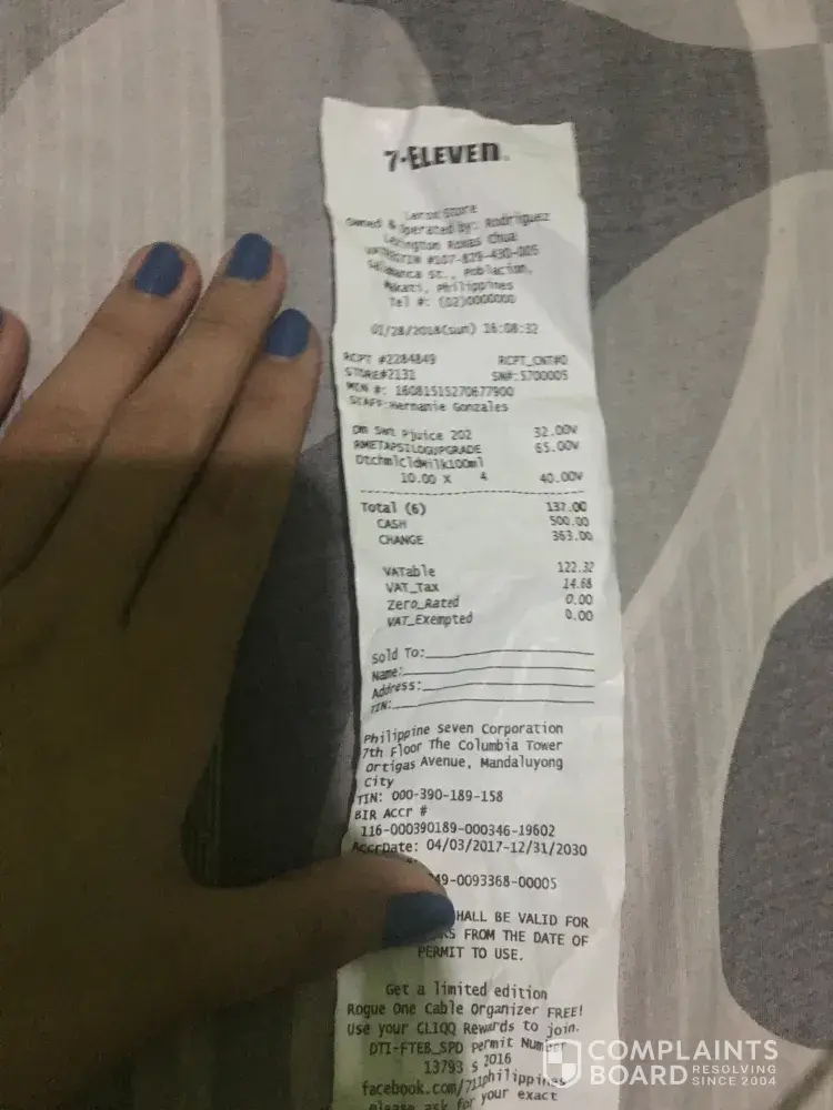 Cashier name:Hernanie Gonzales