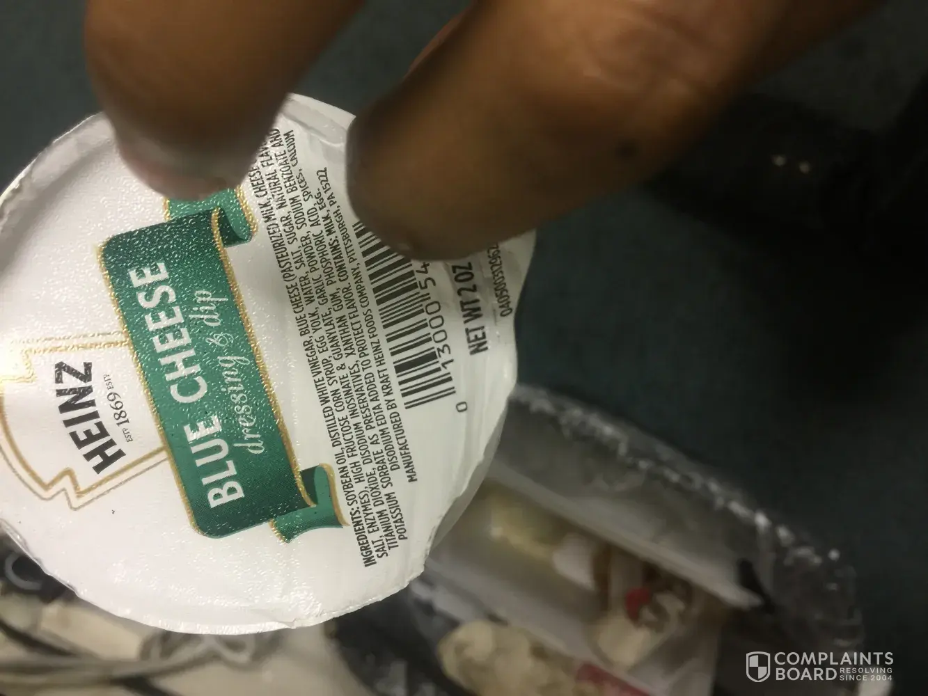 I bought a Blue cheese at launch time and the ranch they gave was expired more than 3 weeks it's almost a month in 2 days and now it's making me throw up. I have all the information attached and if it's needed i'll attach the receipt too. This is not the first time it happens too if it helps and this time I just can't handle it the blue cheese test like...