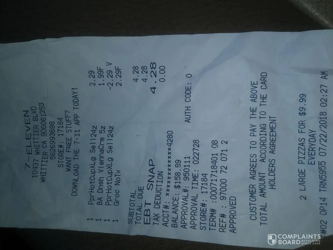 morning cashier declined payment method via calfresh benefits for hot food food products