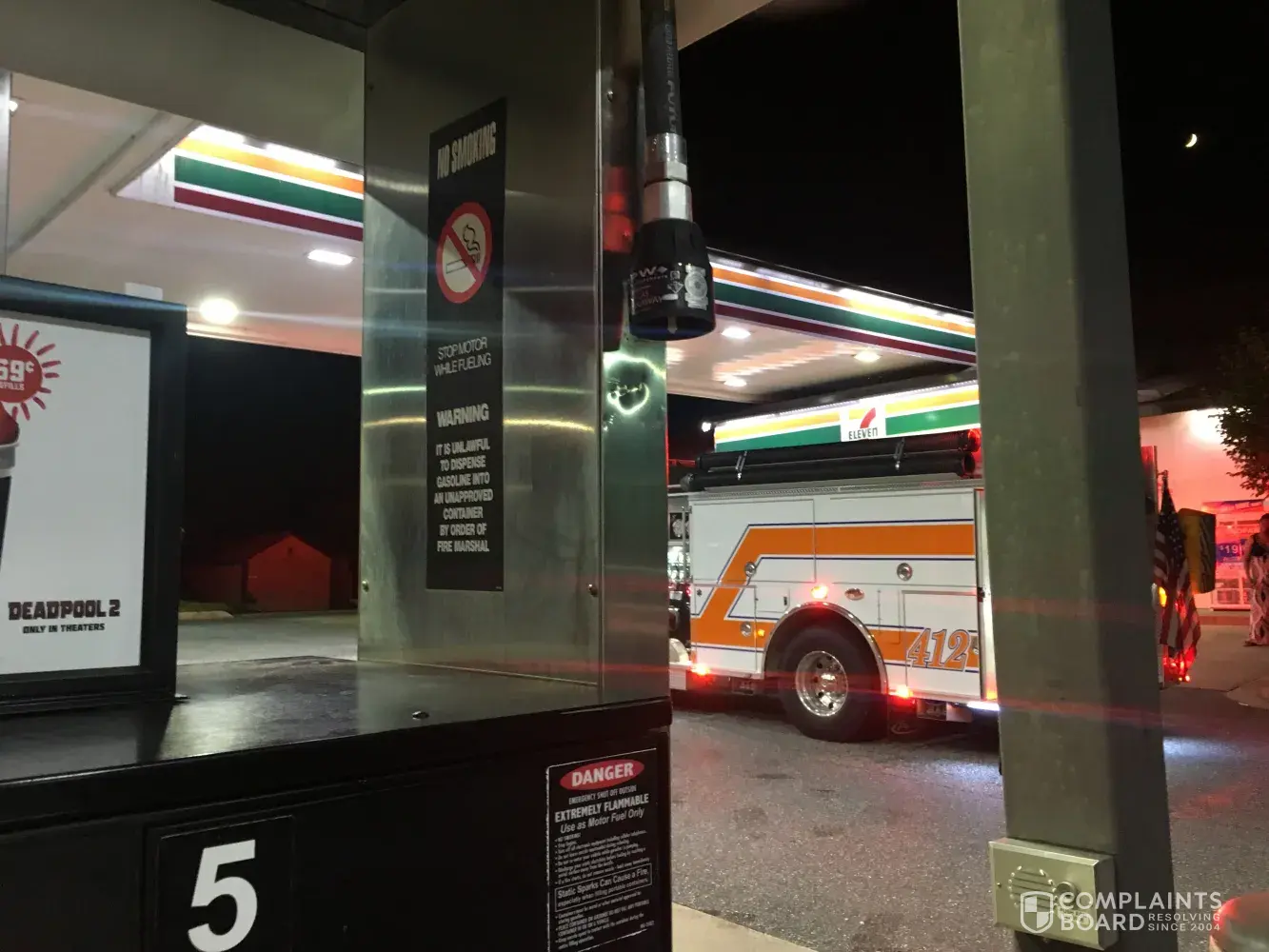 After a very nice Father's Day celebration with my family, I stopped at a 711 gas station located at ‪3508 Philadelphia Road, Abingdon, Maryland 21009‬. At approximately ‪10:00 p‬m ET‪, I pulled up to Pump #5, at store #33075, inserted the nozzle and began to pump. A few seconds later the entire hose detached from the machine; spraying gallons of gasoline on my face, in my eyes, on my clothes, and inside my dress shoes. I ran into the station requesting them to turn off the pump. ‬The attendants didn't offer me any assistance nor anything to wash up with. Additionally, they refused to give me any information when I initially asked for a manager or corporate information. ‪Over 23.844 gallons of gasoline had dispersed and charged my credit card for $66.26. Additionally, I was instructed to not move my vehicle by the fire department due to the amount of gasoline that had been disbursed; in fear that my vehicle would ignite and set the station ablaze on contact. I was forced to stay there covered in gasoline until the fire department representatives dismissed me. ‬