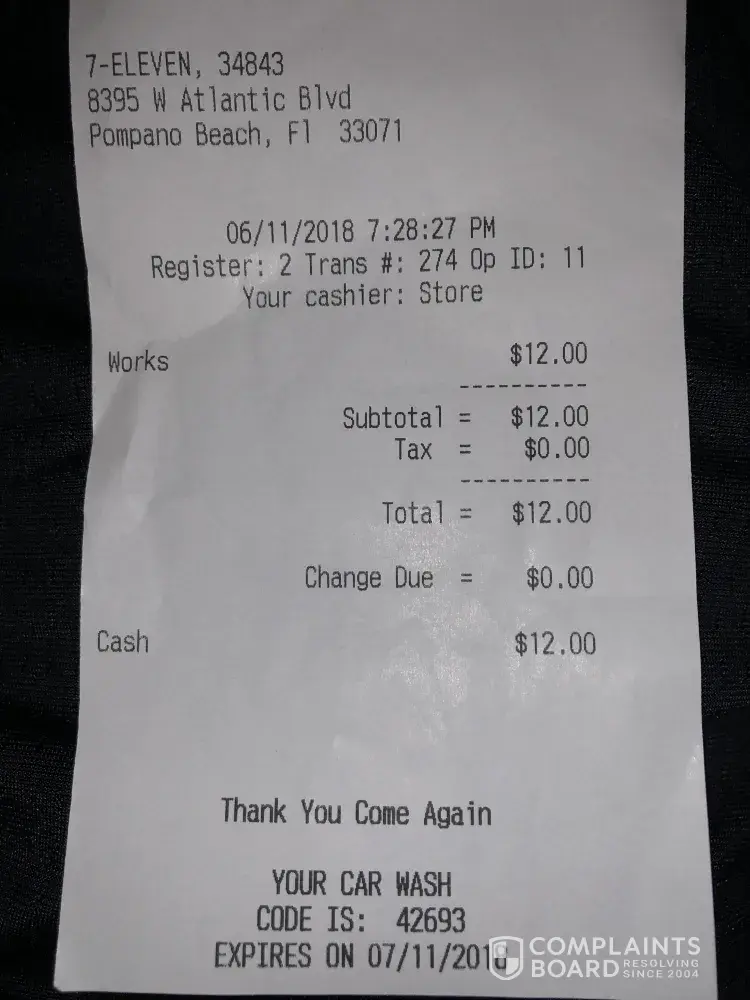 I came to the store at 8395 w Atlantic Blvd in pompano beach 6/11/18 at 7:28pm tu buy a car wash premium for 12 dollars, the car wash was down. It wasn't working, I spoke with the CSR and told him that I have to come back for refound because I was in extremely rush. I cane back at 10:43 and another CSR didn't want to refound my money when he knew the car wash is not working. What's going on ? You guys need to train well the CSRs. Not manager around. Now I have to drive for a third time.