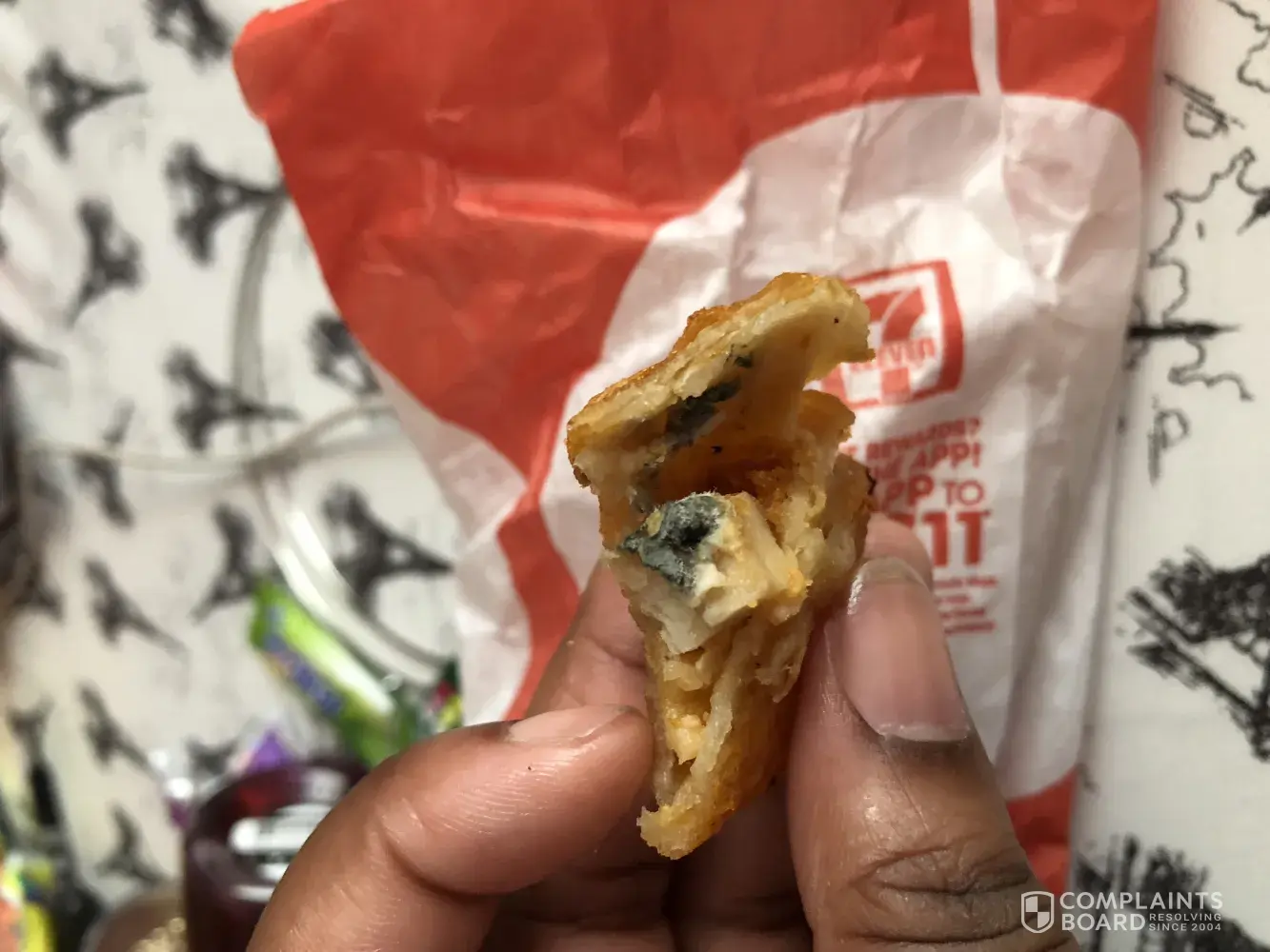 I went to the 7 Eleven in Washington D.C. on Minnesota ave. I brought a Monterey Jack and chicken taquitos. I got home about 10 mins later. I bit into the taquito and it taste weird and also smelled very foreign. Once I looked down at it i noticed that it was mold in the taquito. The was a greenish color with a with patch of a fur like texture in it.