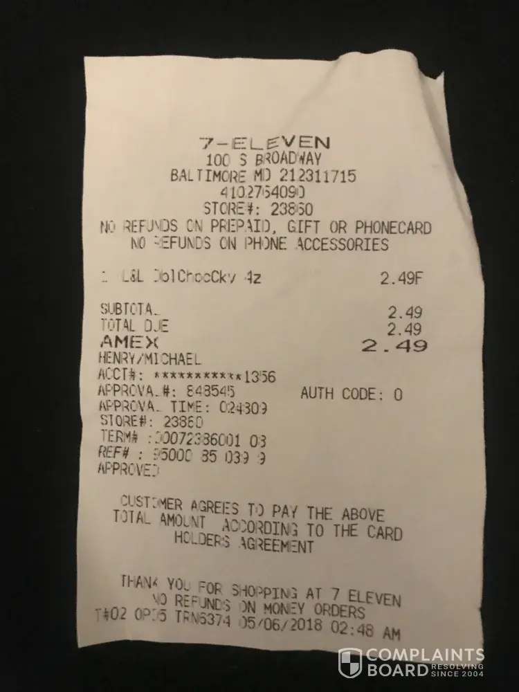 Went into 7-Eleven yesterday to purchase a simple drink got to the cashier pay for my drink by the time I reached the front of the door to leave out of 7-Eleven I looked at my phone and all 59 hundred and something of my points were taken when I went to go complain the only thing that was said file a complaint can you please restore my points because it took me several months to acquire all of the points when other friends had told me the same thing happened to them I would just laugh but when it happened to me I was very angry and very pissed off because I own those points over months of purchasing from 7-Eleven that is not fair to have a customer come in save their points and then purchase with cash and item and then have all of their points taken off none of my points should have been taken because I purchased what I got from the cashier