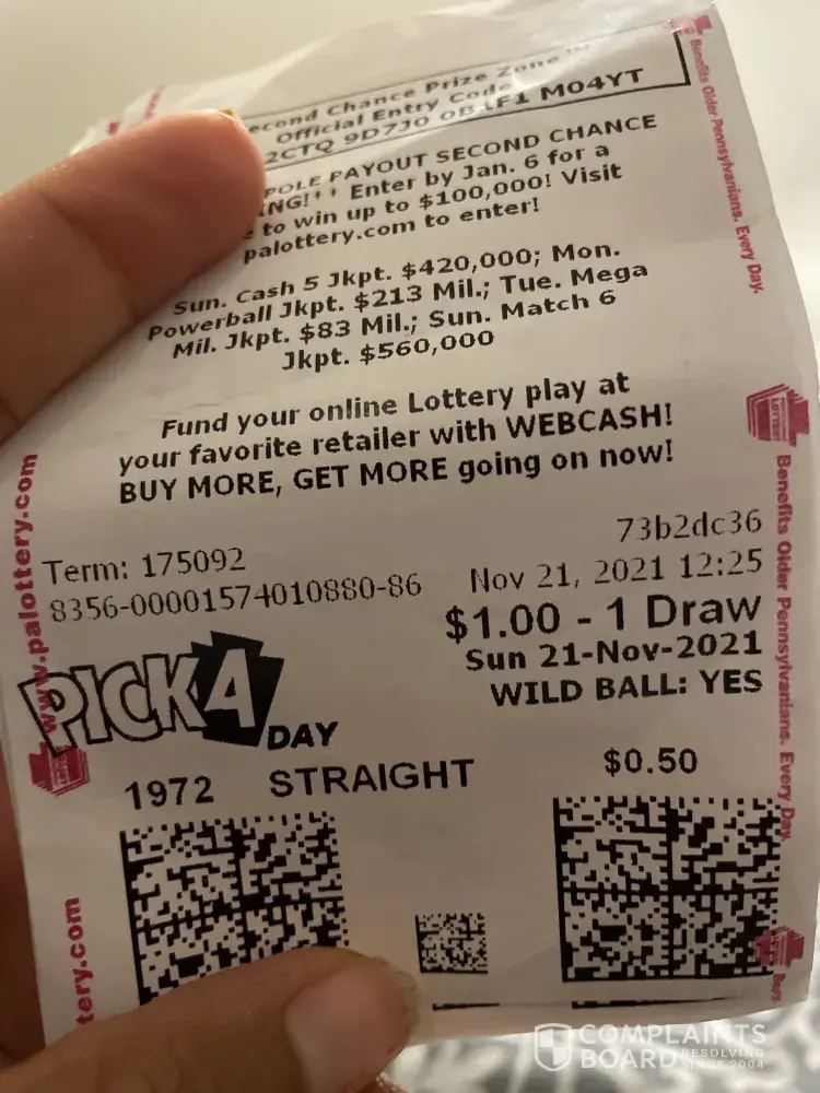 I went to the 7-Eleven retailer on Nov 21 to purchase lottery tickets. I was only playing one number in multiples ways meaning pick 4 box straight and with the wild ball. I was excited because of the origin of the number I chose. After communicating that to the retailer he gave me a ticket on the top of my stack of tickets for the wrong number and made a...
