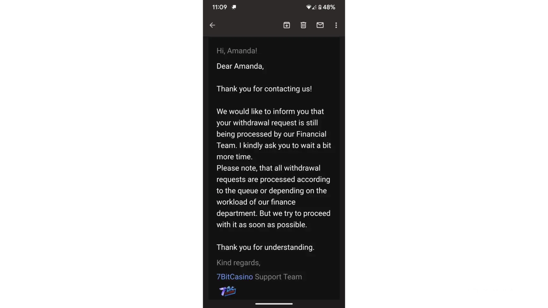 I gotta tell you about my experience with 7BitCasino. So, I actually got pretty lucky and won twice in a row. BUT, when I tried to get my winnings, I hit a roadblock. They told me to contact customer service, but I've been waiting for nearly a week and they keep giving me the same answer. They said they forwarded the issue to the appropriate department, but I'm still waiting. It's frustrating not being able to actually call someone and ask about the issue either. All I have is email.