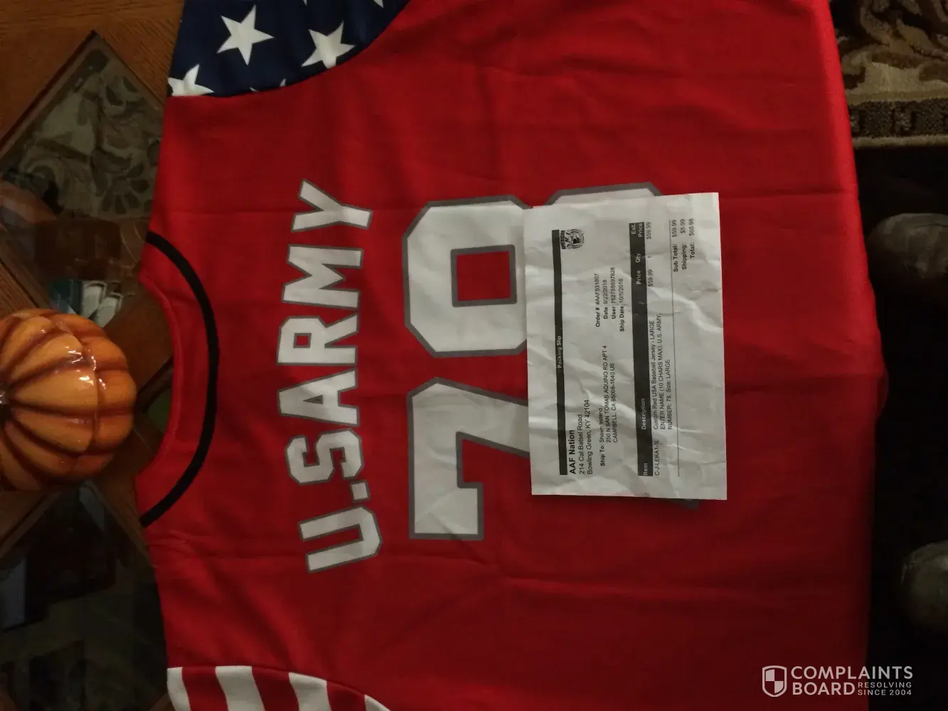 I have tried for the last four days to get a response from you on replacement of the jersey I purchased from you. I had U.S. ARMY printed on the upper back and I got U.SARMY on the jersey you shipped me. I am a Disabled Veteran and you are a company made up of veterans and I would expect to see better service to a brother in arms. Your site says you just redo the job and ship it out. This is my seventh attempt at reach you and get some reply and I only received a questionnaire on the service! Please contact me in regards to the jersey. I will again send pictures showing the mistake that was not mine by proof of the packing slip. I ask you please help me in resolving this issue.