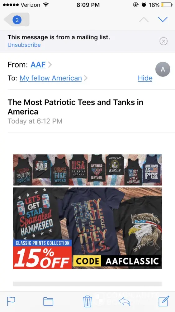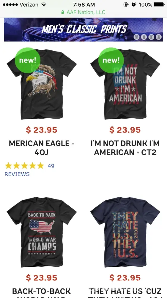 AAFNation’s earns a 1.0-star rating from 0 reviews and 20 complaints, showing that the majority of customers are dissatisfied with their patriotic apparel and accessories.