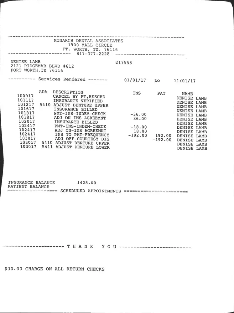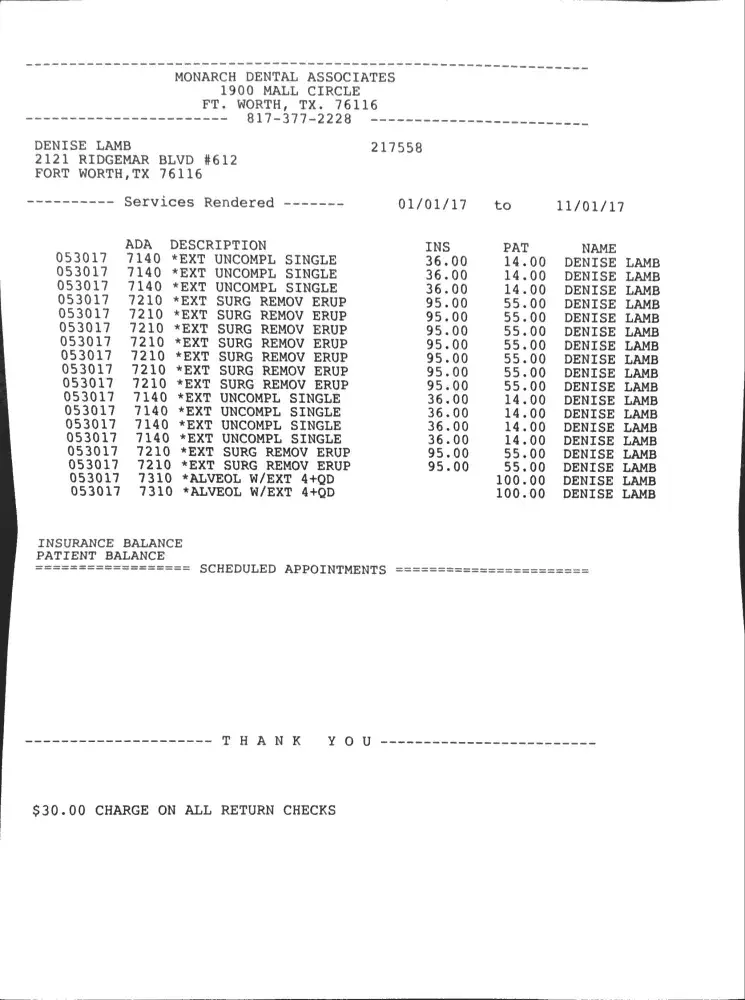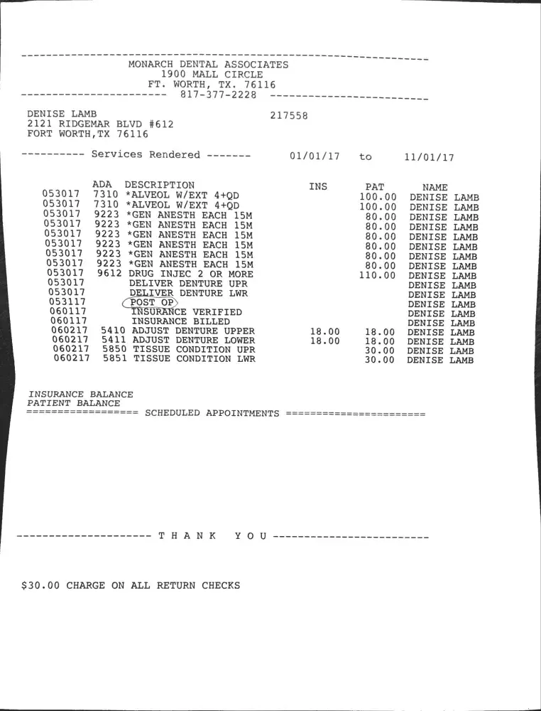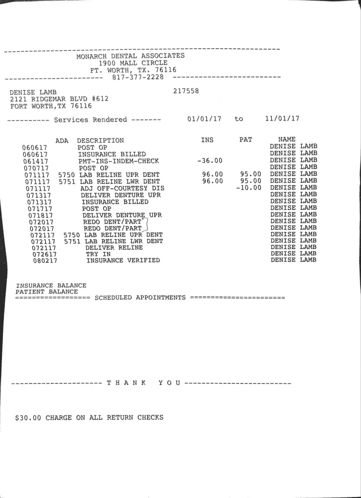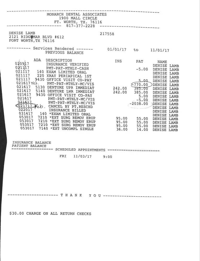 Due to this malpractice and neglectful care I've received at Monarch Dental, I am requesting a full and complete refund. If they do not reimburse me, I will be forced to report Dr. Gopi, Dr. Strickland, and Monarch Dental to the Texas Dental Board.