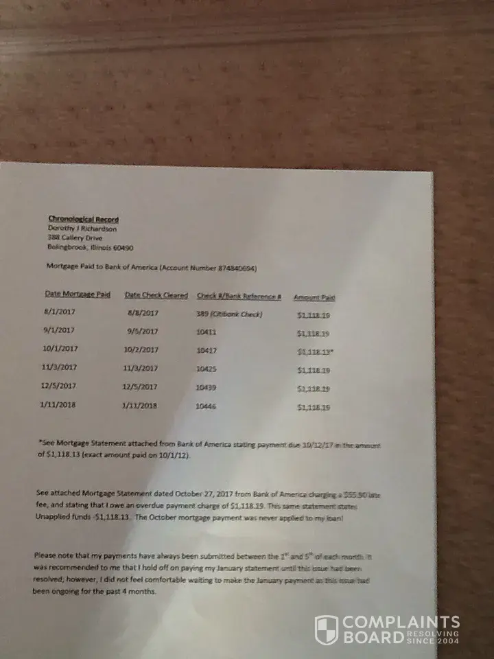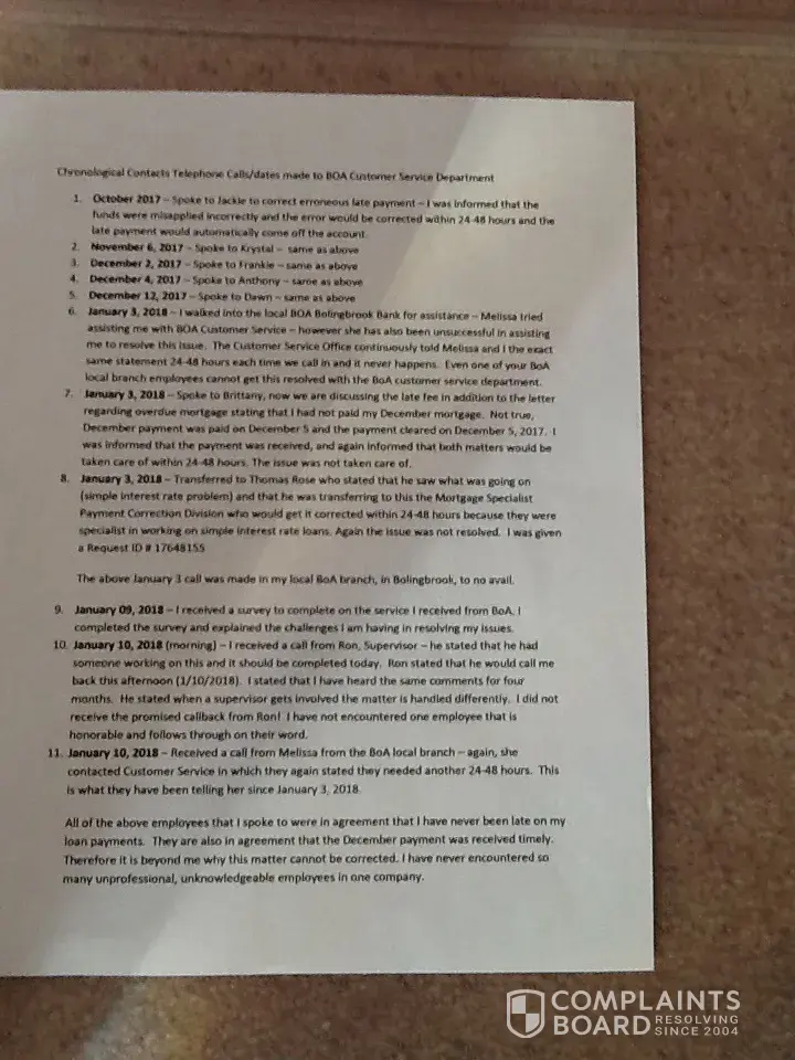 Trying to resolve erroneous late fees/overdue payment with BOA
