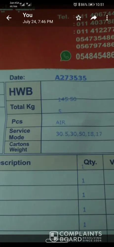 I have sent almost 145kg of very important essential via ABC CARGO BATHA KSA