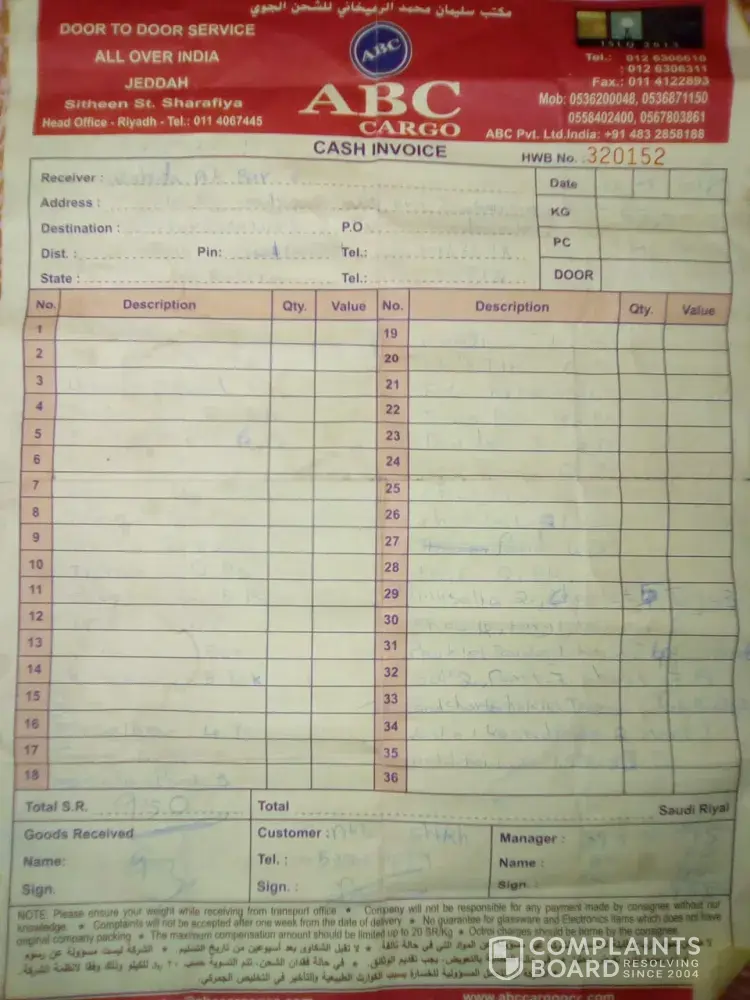 My Cargo Invoice has been generated on 08-05-2018 from Jeddah (Invoice soft copy has attached below).ABC Cargo promise to deliver the goods within 10 to 15 day to India at Mumbai my hometown but it's all ready 1 month pass away still yet my cargo has not delivered to my hometown.