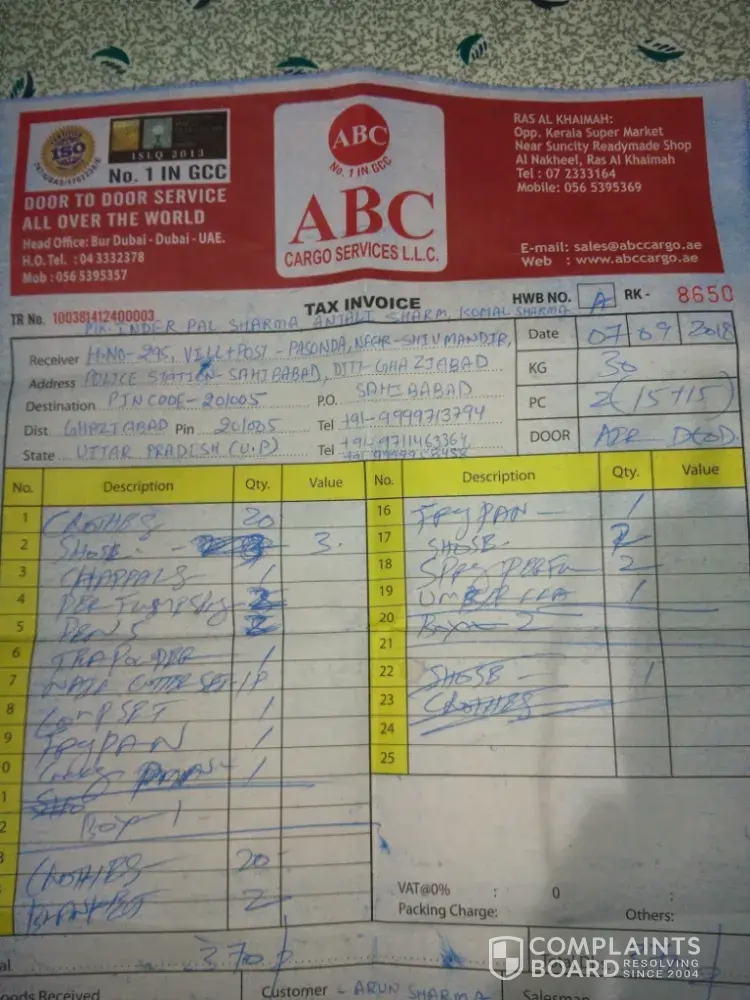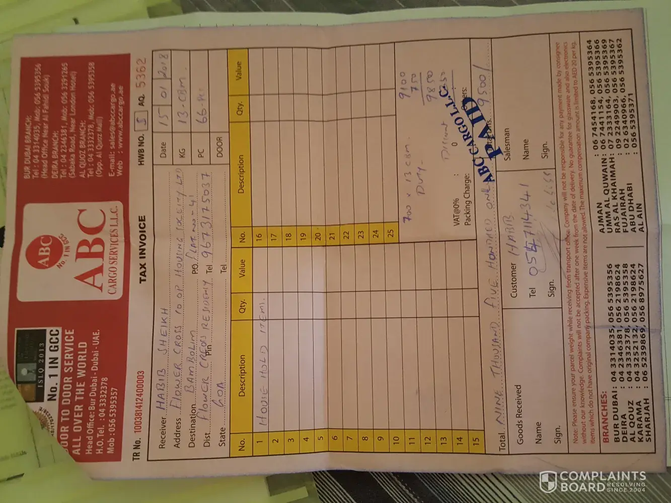 THE ABC CARGO SERVICE OF BUR DUBAI THEY TOLD ME THAT THEY WILL DELIVER TO MY PLACE AROUND 20 DAYS, NOW ITS 30 DAYS OVER THEY ARE NOT RESPONDING I WANT QUICK ACTION AGAINST IT. I CAN FILE CASE AGAINST YOU IF YOU LATE FOR NEXT 4 DAYS.