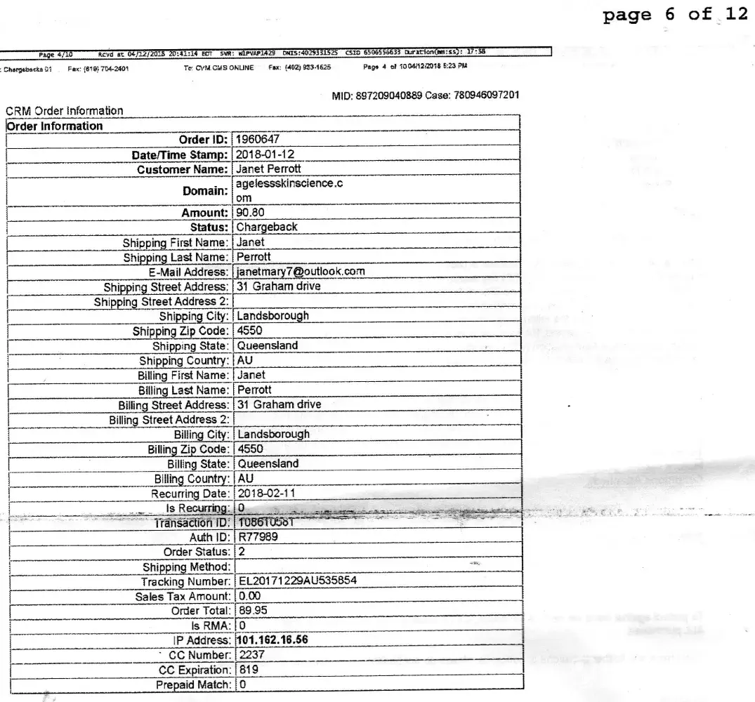 skincare products I did not order but was charged for: au$233.13.