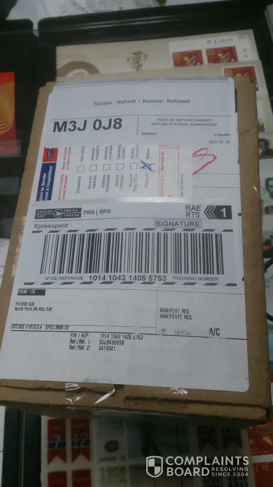 The 2nd shipment of cream was received at their north york location on jan 6, 2016 but they have yet to credit my card. Canada post tracking no. [protected]