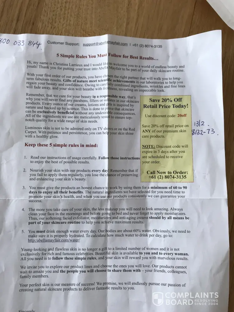 Abella Mayfair beauty product fraud