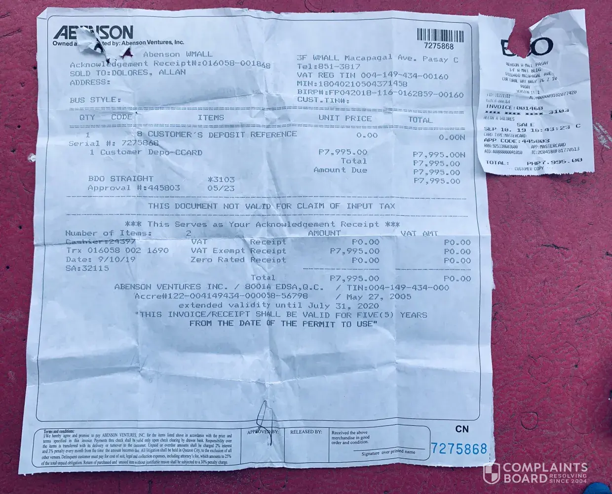 Desired outcome: I want a honest explaination why the company sales a repaired item and not a brandnew. the next step would for the abenson subic company to decide if we go to legal actions.