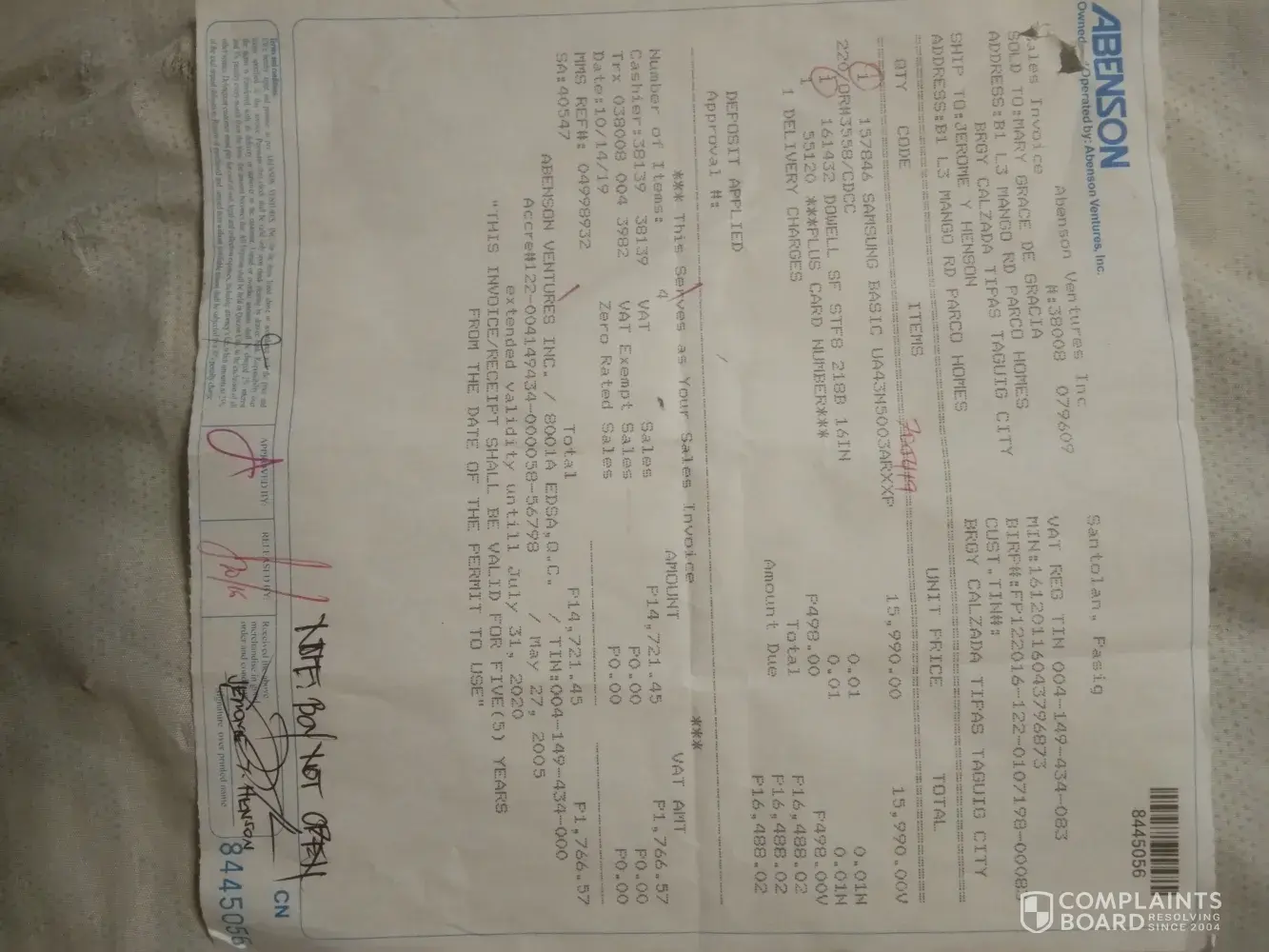 This is regarding the unit we purchased with ABENSON Filinvest Alabang, last October 13, 2019, Sunday, Samsung 43" Television. The item were delivered last October 15, Tuesday, my husband make a testing of the unit the day it was delivered and found out that it is not working. The same day we called the hotline to report the defective item. After the reporting the conversation between the other party in the hotline coordinated for us a schedule to the check-up the unit which is on October 17, Thursday. The technician came in the afternoon to check the unit and made a service report indicating that the unit needs replacement. The tech. from Samsung Chronicles Manila, told us that the replacement of the items is possible within 2-3 days from the date it was checked . We are expecting the delivery of the replacement to arrive last October 19, 2019, but again upon checking with abenson branch in Filinvest, this has no approval yet so the person who assist us on our inquiry, Michael, ask for the documents to send via email. I tried to call Samsung Chronicle regarding the service report provided last Oct. 17, why is that the Abenson filinvest dont have a copy of the service report and not aware of the status of the item for replacement. I have reached the line and talk with the person in behalf of Samsung Chronicles, she checked with their system, and found out that the unit has already have the approval which was posted Oct. 19, 2019. How hassle, it should be coordinated by the Samsung to Abenson that the items is needed to be replaced. Still Michael of Abenson, asked my husband to send the service report including the invoice which is very hard because of the poor connection on our area. Again after my husband completed all the needed documents they told us to wait for another 2-3days which is different from the Samsung report who called us that we have to wait for another 2 days for the delivery of the replacement after the said approval. Today is October 21, Abenson Filinvest branch called me for the update that we still need to wait for the approval of the replacement. How long will it take for a replacement. Is this the fastest processing for the replacement, 3 days of waiting is too long. Now we have waited for 8days from the time the items were purchased until now there is no replacement of the item. This is very inconvenient for us, you should do improvement on this.