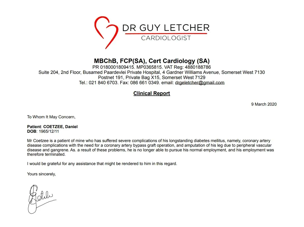 I have been an ABSA customer for many years for my personal and business needs. I never defaulted on payments, never went over my limits, never had a bad credit record. Then 2020 gave us Covid-19. My wife was trying to start a small business in the liquor and tourism industry to support us when SA went into lockdown. Everyone knows that the liquor and tourism industries were hit the hardest. We have defaulted on everything due to a lack of income. My health, which was already on a decline, took a turn for the worst. I can no longer work or contribute to our financial burdens. I don't even have money to go for medical treatment to save my other leg.