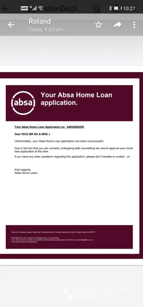 ABSA Bank Readvance denied for false reason account [protected]