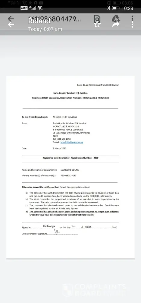 They have give my until the 15 December 2020 to settle I would like to know on what basis was the account handed over to the lawyers as I am on debt review I never missed not even 1 payment since I find that the lawyer Tania Lutge is of no help she does not want to talk to me to find a solution all she says is that the car will be put on auction if I don't pay the full amount.