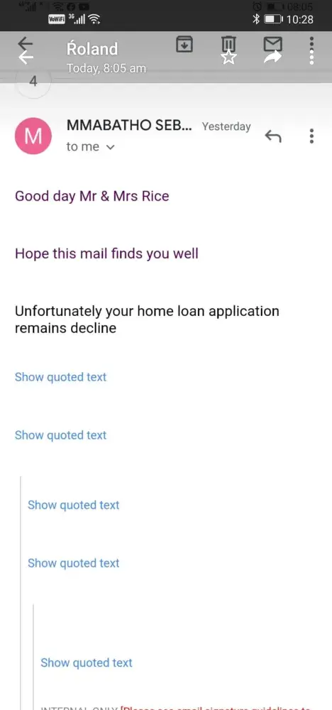 So my wife and I used our revolving debt, to fix up the property as it needed a lot of work in order to make it livable as the previous tenant that had lived there for the past 12 years literally did not care to look after the unit at all. But again we were not stressed about using our credit facilities that we had available to us as we were assured that we would have access without any issues to the R250000 and that we would be able to consolidate all of our debt that had been incurred from fixing up our place and paying for attorney and transfer costs.