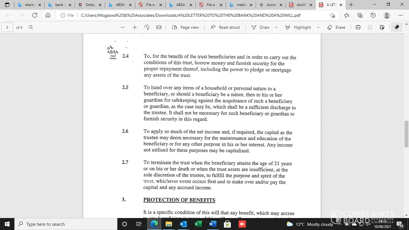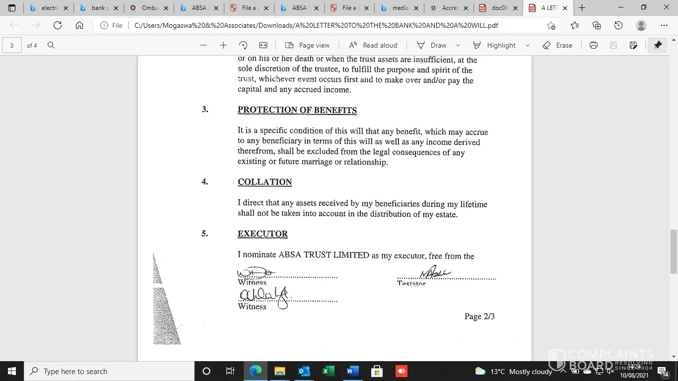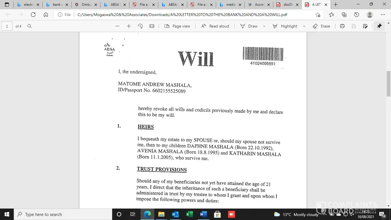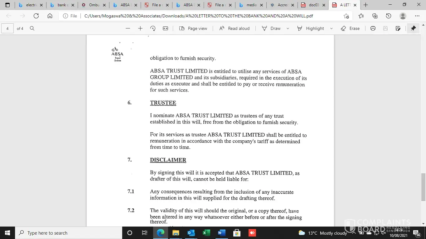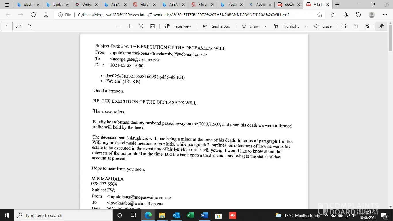 Absa has been given more than enough time to deal with this issue and it is evident that you are not willing to resolve this matter.