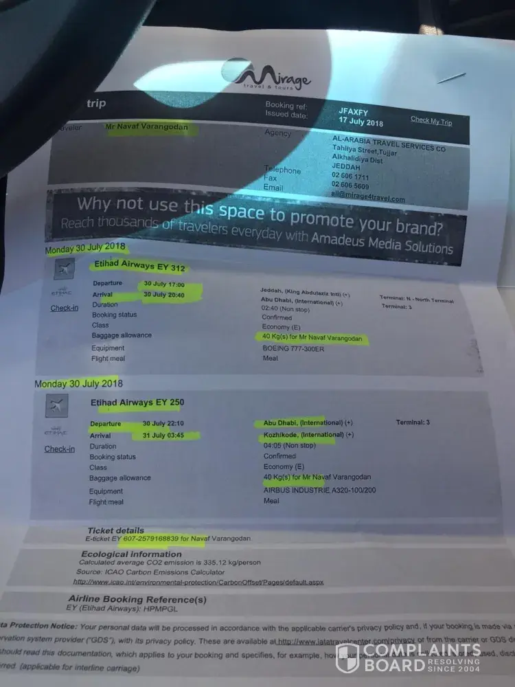 I'm not happy with this service please can you advise on your complaints procedure as I feel that I have been mistreated as in Lahore they were rude, tried to get me to pay more money to take luggage as I refused now they admitted that they made a mistake on the ticket. Cause of there unnecessary stress it affected me where I accidentally left my bag when reported I was reassured there would be no fee now your saying there is surely ethihad should take some responsibility and show compassion especially when they caused the unnecessary stress in Lahore at the start which effected my experience on the flight.