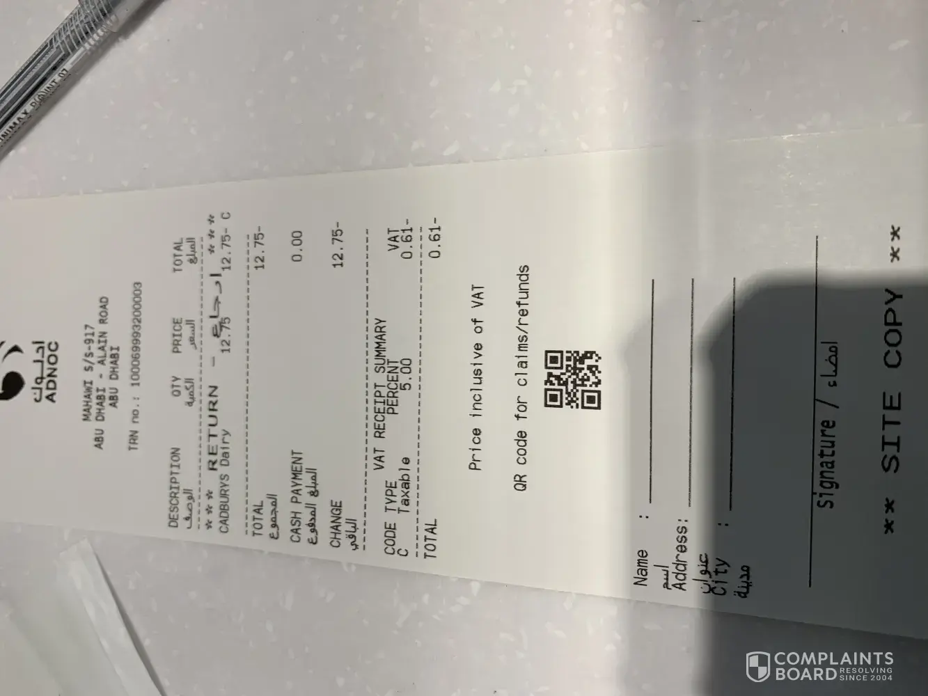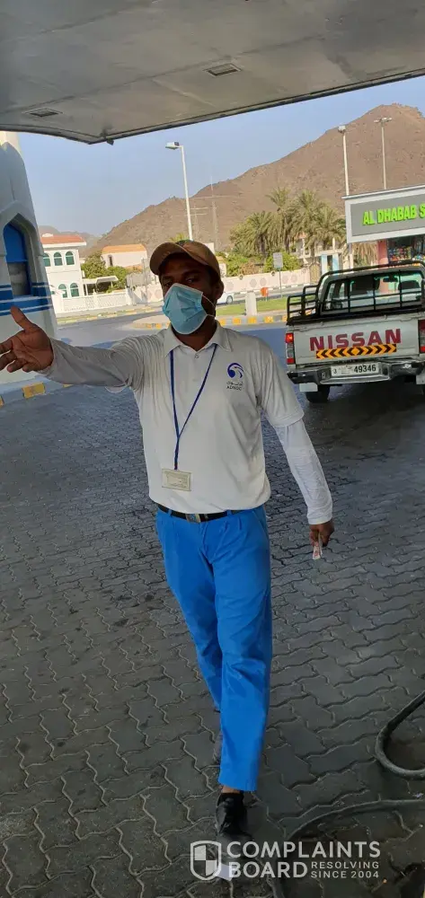 I try to make a compliant to his supervisor. unfortunately, noone was there to make a compliant. I hope Adnoc will take action against this person and will teach lesson such misbehaving persons. He refuse to give his name and number. so, I took photo of him and attached for your action.