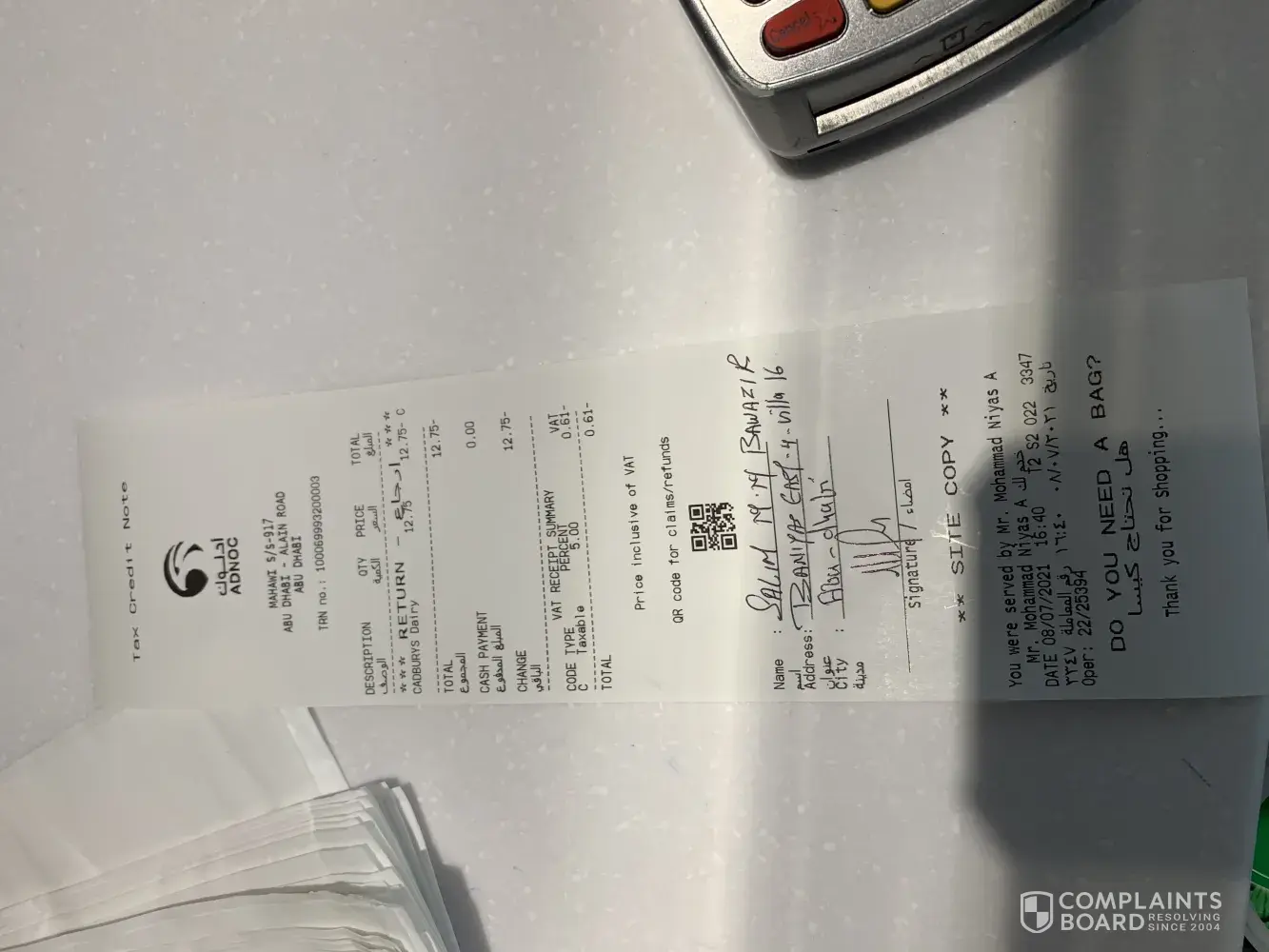 As a customer, I trust in the only petrol company available in Abu Dhabi and hope I can continue to trust them. It's not like I have a choice as it is the only gas and oil company in Abu Dhabi. I would like this matter to be resolved amicably and as soon as possible.