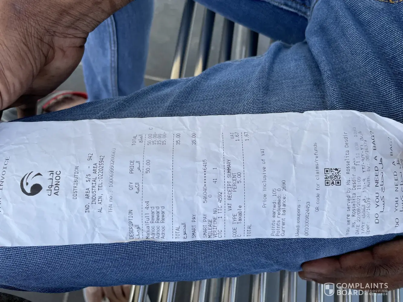 I was at ADNOC fuel station AL RAMZ 668 Station number to fuel my car at 21:49 pump no 8 receipt number 440845.