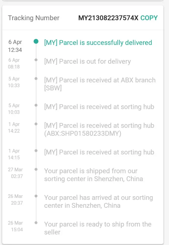 Jun 10, 2021 10:14 AM - Parcel has been collected (SBX - Sabah)
