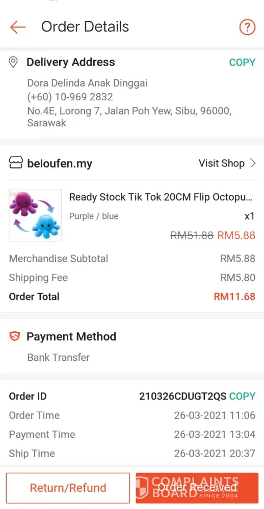 Jun 11, 2021 03:38 PM - Delivery completed (Kota Kinabalu - Sabah)