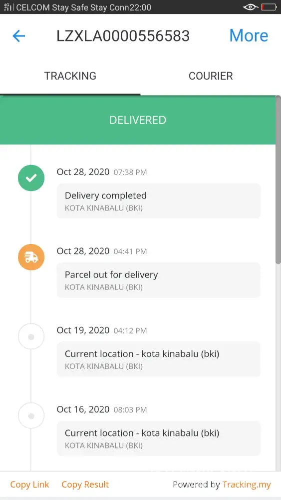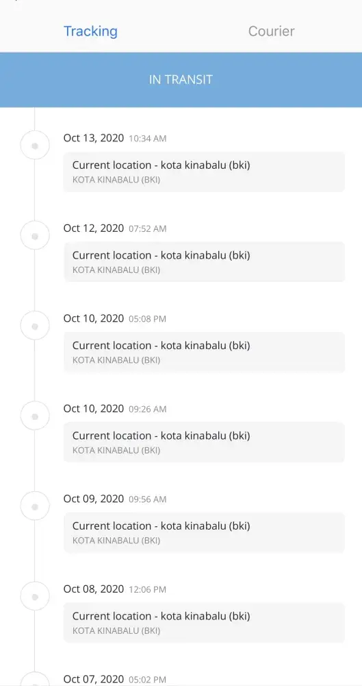 So, my parcel (SHX78029959CMY) reached UTS Logistics Sdn Bhd in Jalan Kolombong, Sabah on 21/10/2020.