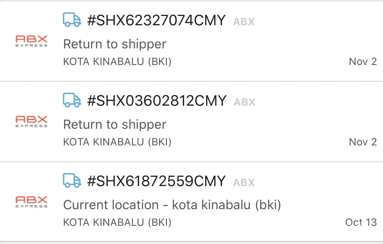Finally, on 12/11/2020 I visited UTS Logistics Sdn Bhd in Jalan Kolombong to self-collect my parcel. Was told that the parcel allegedly was already delivered to ABX Tamparuli since last week (but they never updated it in the tracking system). I then called ABX Tamparuli to track my parcel. I was told that ABX Tamparuli never received my parcel.