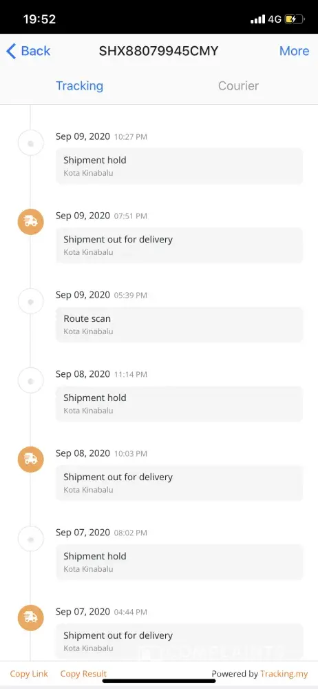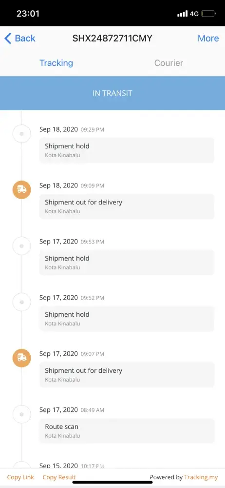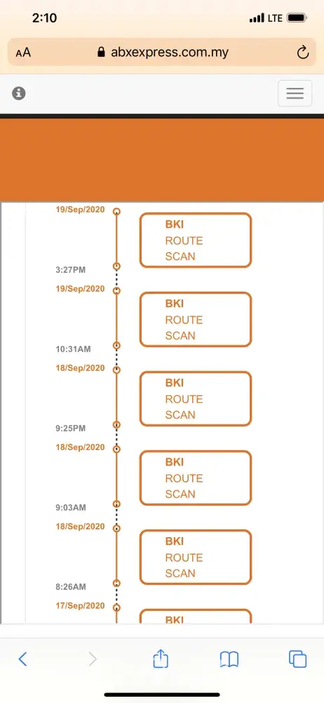 On 17/09/2020 called ABX about the parcel. The staff informed that they outsourced the delivery service which this runner is "normally" late in delivering parcels and always holding parcels for too long?!.