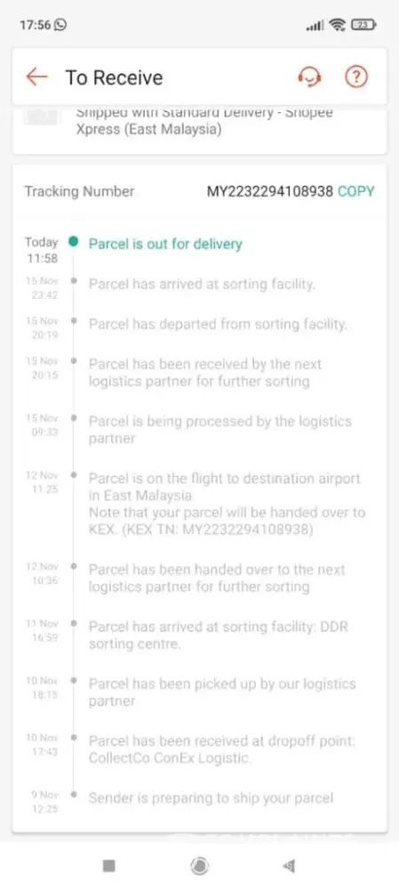 I want to complaint under order MY2232294108938, i bought thru shoppe and its seem that my order has been transfered to be delivered thru abx express. I tracked my order thru shoppe, and it's been 3 days, my parcel recorded as "out for delivery" but hasn't receive any parcel since 3 days ago, How did your courier do they work? Did they keep it as a treasure hunt or what? and today is already 18/11/2022, I tried to call your customer service but i can't reached out since it marks as Public Holiday, and i'm very sure your courier also enjoying they very precious holiday with a content heart without delivering customer's parcel. Well, this is not the first time I encountered this situation, especially from ABX Express. Please take proper action regarding this!
