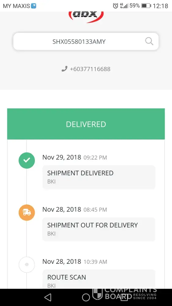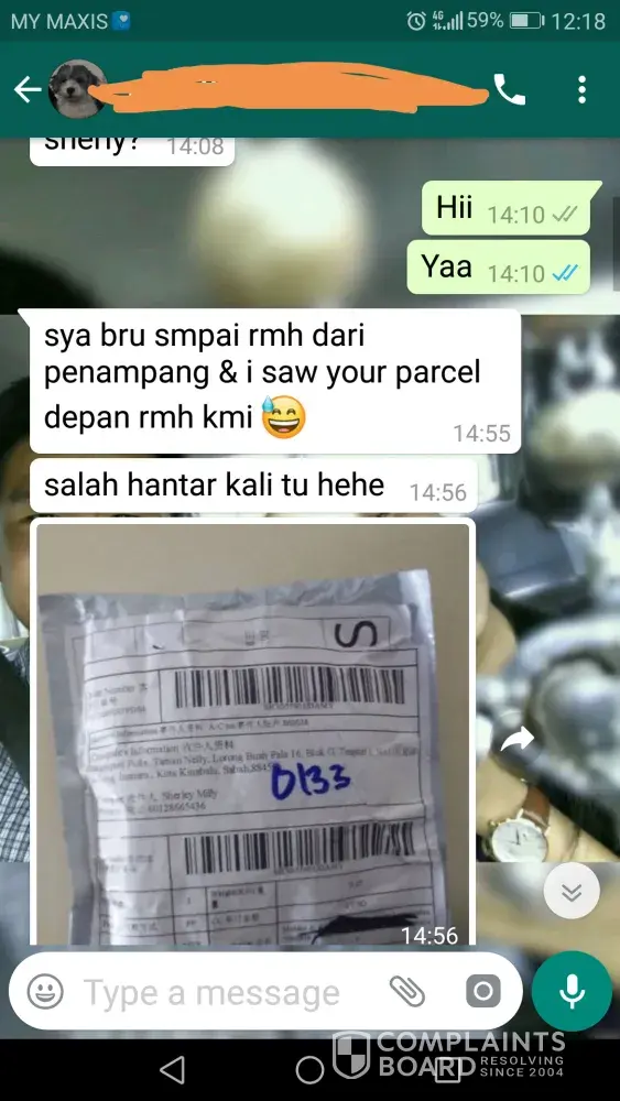 Hello, I should be receiving my parcel on 29th of November 2018, my tracking number is SHX05580133AMY. However, I received a chat from stranger saying that my parcel was in front of her aunt's house, she saw my number stated, so she chat me on WhatsApp. I was so confused at that time because I live in Kolombong, Inanam, but it's weird that the parcel was sent to Penampang, which is quite far from my place. Luckily, the person who chat me was kind enough to contact me and we met at a place so she can give me back my parcel. I don't want any refund because my parcel is looking fine as it should be, but my advice is please look more carefully when sending a parcel to someone's house. What if the parcel is something valuable and the one who shouldn't receive the parcel has the desire to take the parcel for himself? Anyway, this is not my first time using ABX. I've used ABX before and there's never anything like this happen. The service was always good and they always delivered my parcel right in front of my house. I hope the next time I use ABX, there would not be anything like this happen in the future. I knew it was not by accident so please pay more attention and check carefully on the address the next time. That's all from me, have a good day!