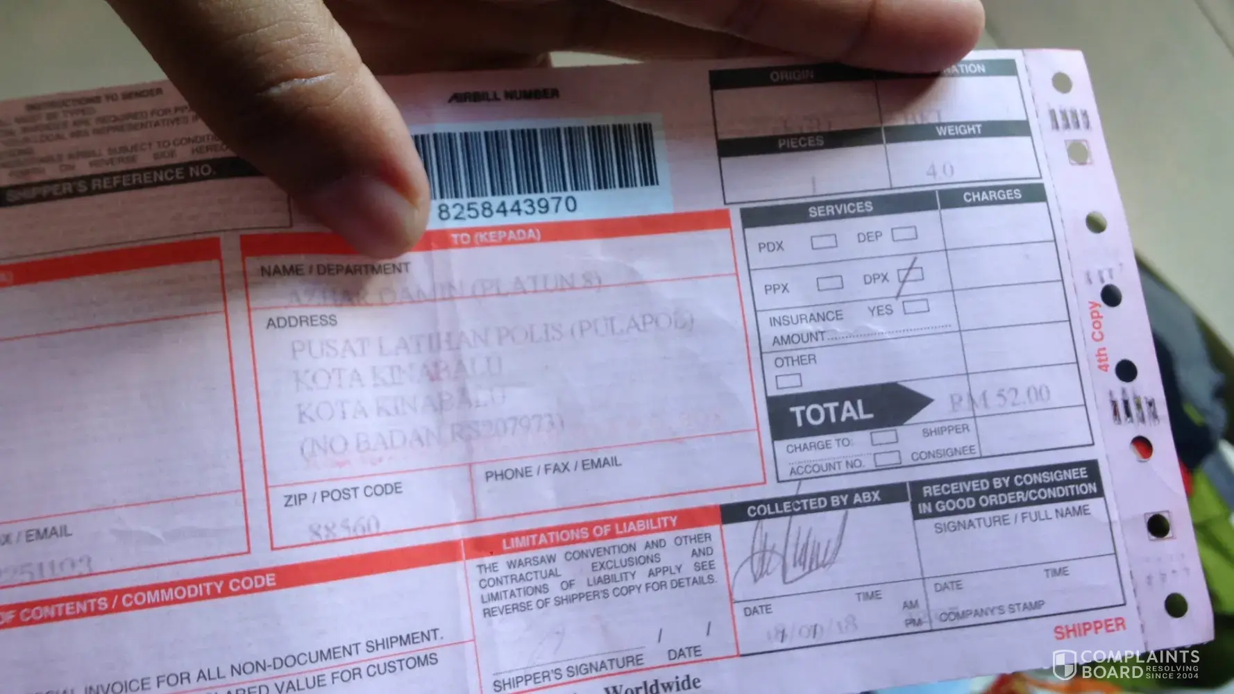 Document under tracking no. [protected] was collected by courier (ABX Express) on 19/6/2018 but until today it has still not been delivered to me. The sender and my address are within the Klang Valley (no more than 20 km apart).