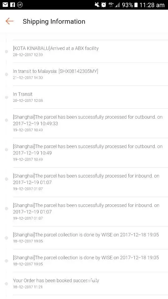 Hai.. saya sepatutnya menerima item tu 5/3/2018.. tp smpi hari ini sya call customer service.. item blom masuk warehouse (SHX97012796AMY)... setahu saya 1/3/2018 lg brg tu dh sampai Msia..2 brg sya smpi serentak 1/3/2018 dr China.. satu lg pos laju handle dan hari ini dh smpi Kudat Sabah.. Jd sepatutnya sya beranggapan yang Abx lebih Efficien dan pantas.. Kenapa?