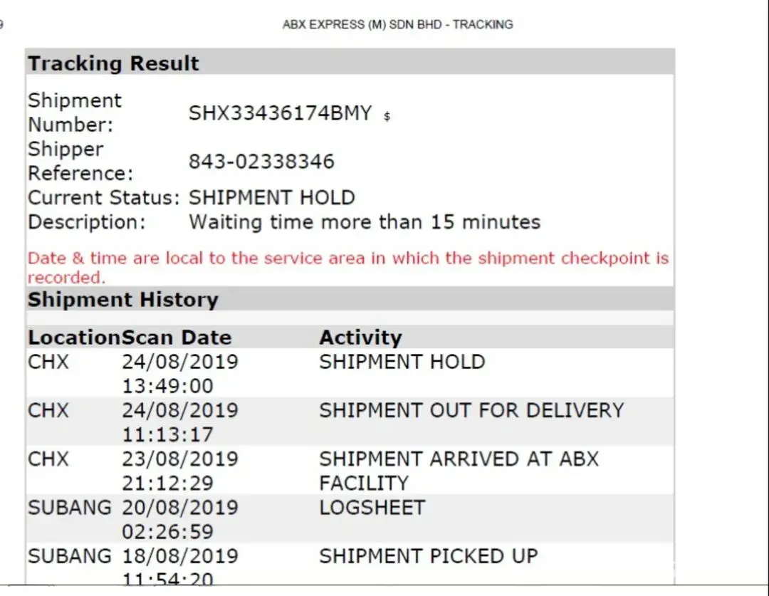 And, i have called to ABX customer service and spoken to the person name Ms. Rubini, i had given her all the information about my parcel and she informed me that, she will get back to me after check with Subang branch but after that i don't receive any call from her. I tried to call ABX line and it always busy... Now I have no other option than raise this complaint and hope there will be a reply on my complaint as i need to know the details about my parcel asap and the parcel details is as below