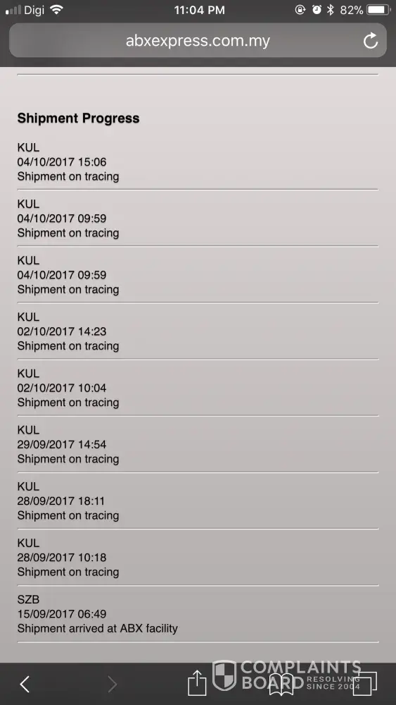 Consignment no. [protected] sent out on 31/10/17. Only received on 8/11/17 after few calls to Miri ABX for checking on the parcel.