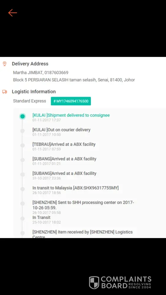 saya telah membuat penempahan pd 28/8/17 dan telah menerima msg bawawa brg telah sampai pd 5/9/17 tetapi sehingga hari ini masih tidak dpt lagi brg tersebut.