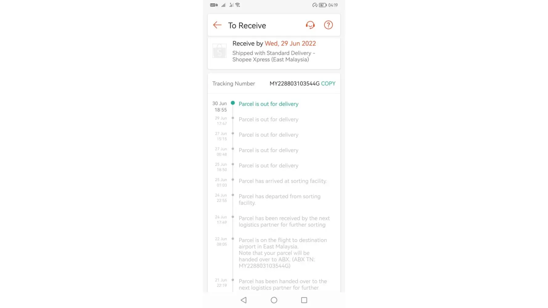 Order item from China. Tracking read that item has been received at ABX Kota Kinabalu. For 3 days no movement was detected for delivery. Courier service supposed to be fast and efficient. And this is not the first time I encounter this kind of delay. I tried many times sending email to ABX but failed.