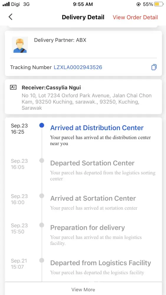 My thing is in sandakan since 22/09 but they haven't delivered until today 24/09. When I called, the lady said is in stor, say need time. I ask her to rush it, she said I just have to wait, they have many many parcels need to be sent, not only mine. She is not helpful, not willing to chase the order at all. She said since abx is so bad service as I mentioned, she said better I don't use it next time. I didn't want to use abx but have no choice since shoppe set it for me. Stupid lady, I told her that, she said I can request it & seller will set it. This kind of working attitude still can get hired, I really wonder.