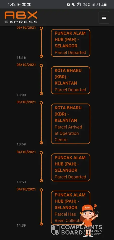 My parcel should be delivered by 5 oct... But until now its stuck for 4 days at abx kudat