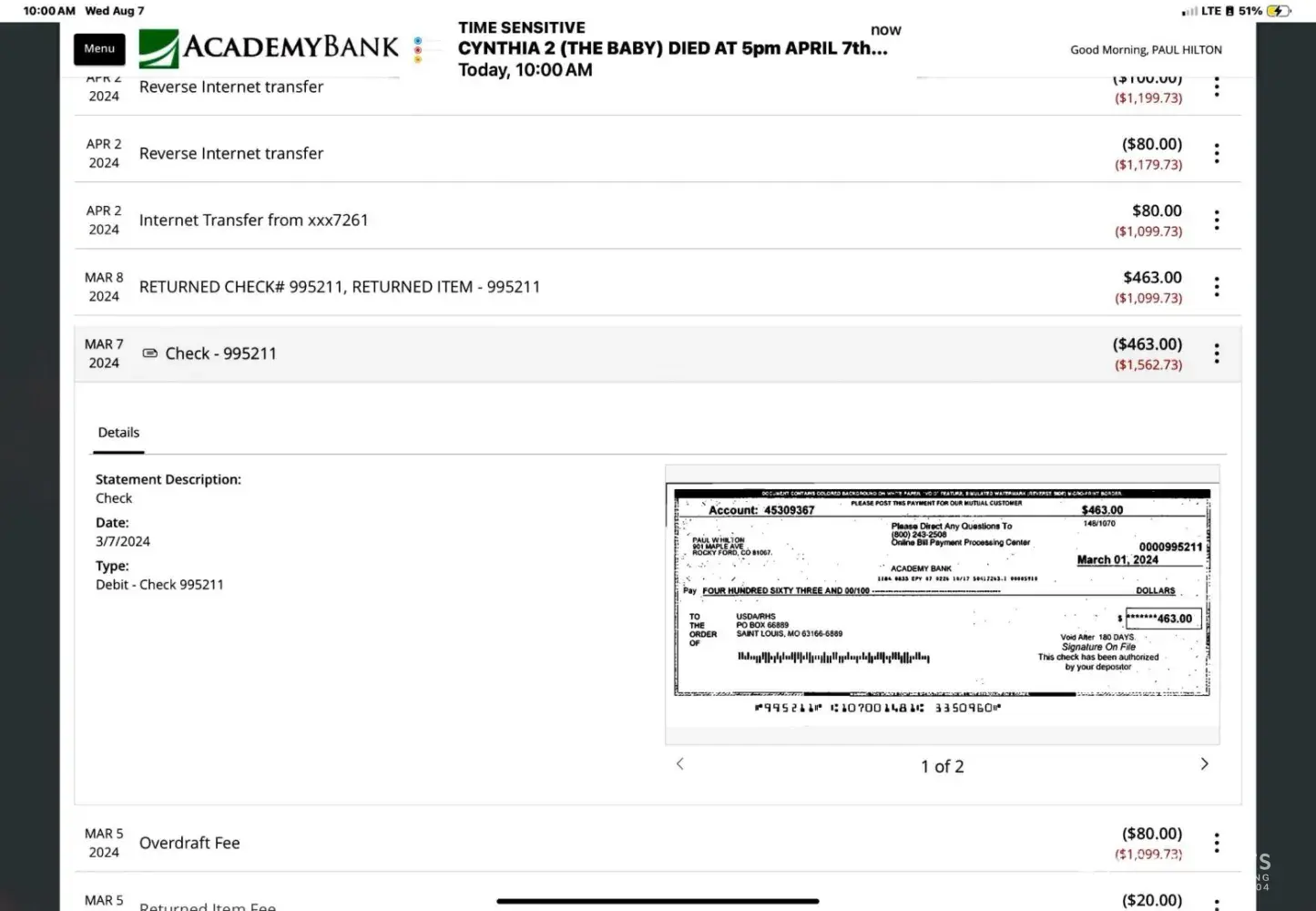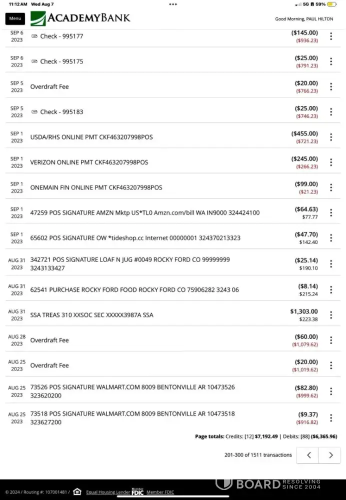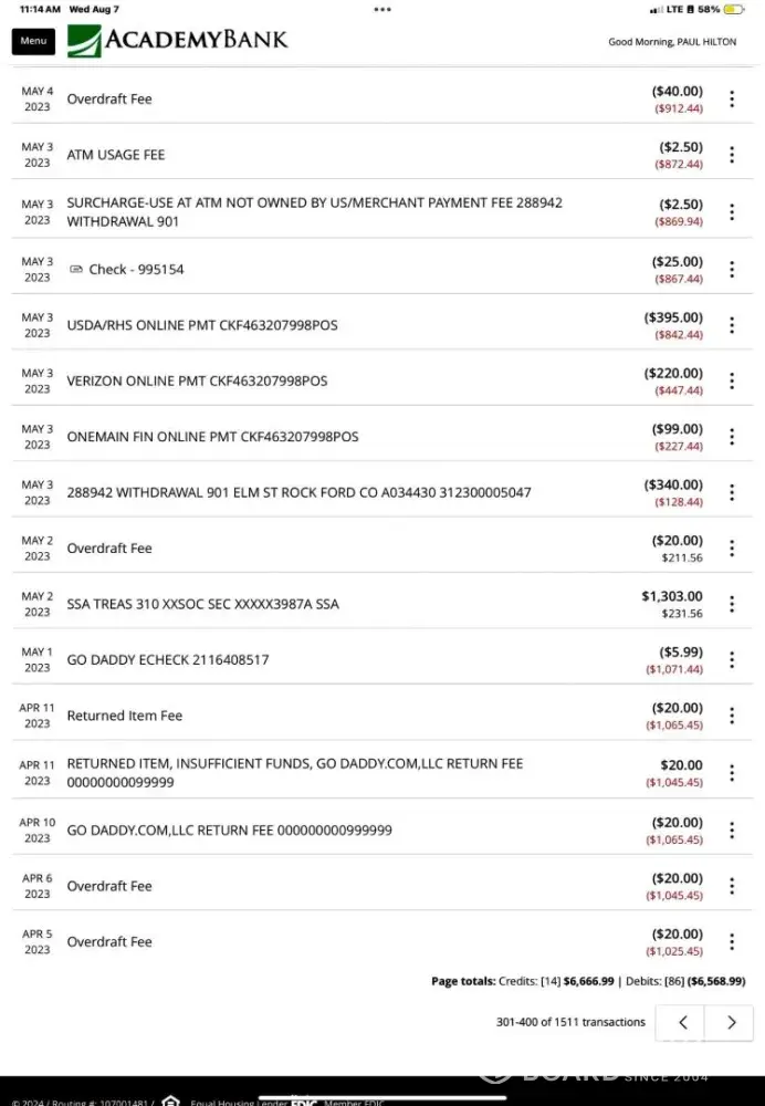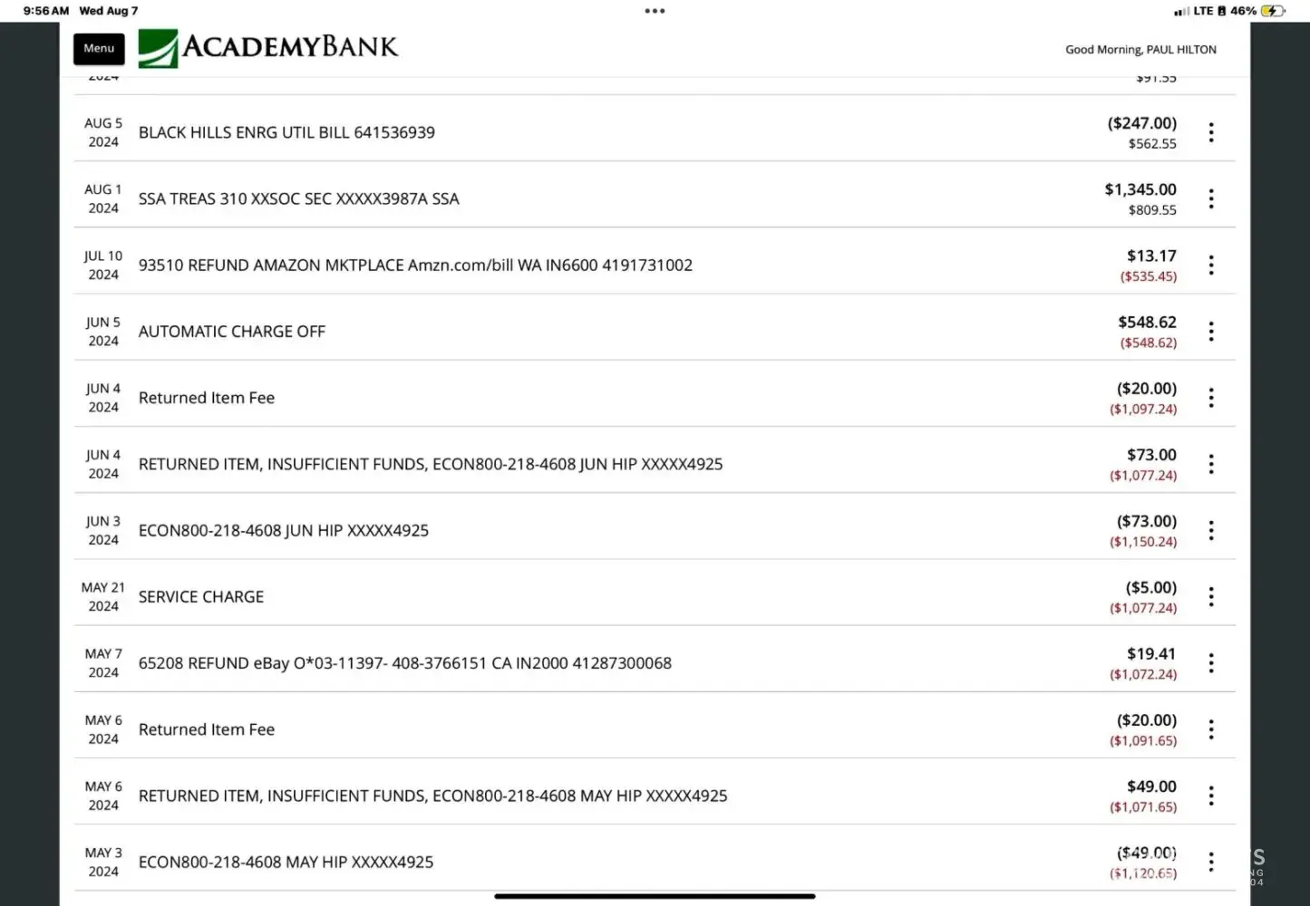 My name is Jimmy Marshall and I have been with academy bank for several years and this has happened almost every month for the past 4 years can you please put a stop to this ASAP I am a disabled veteran trying to get a home for me and my family we are living in our truck.