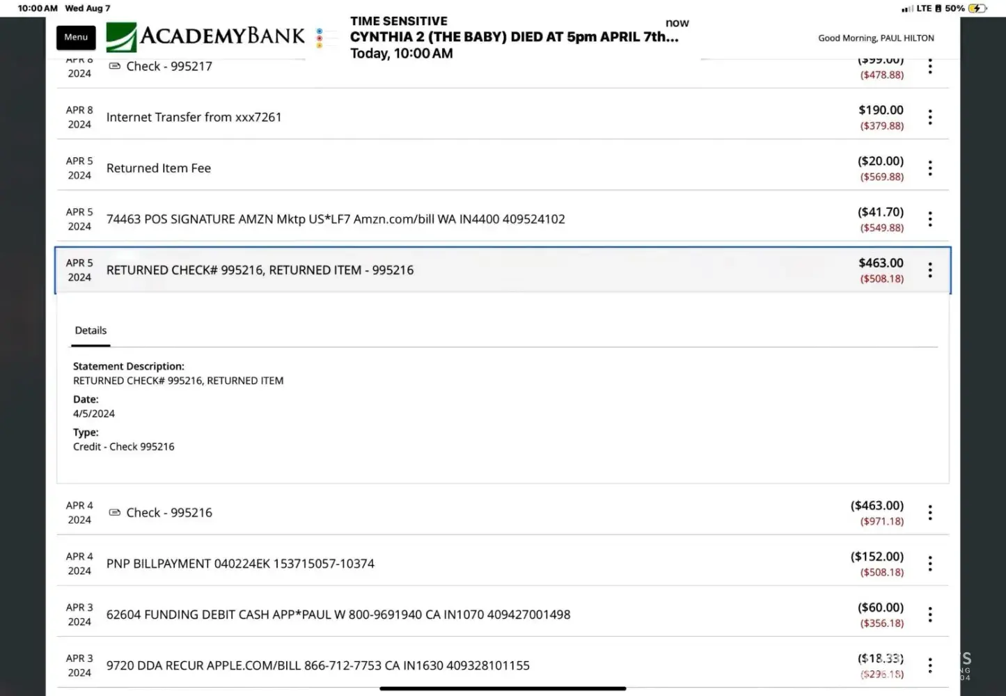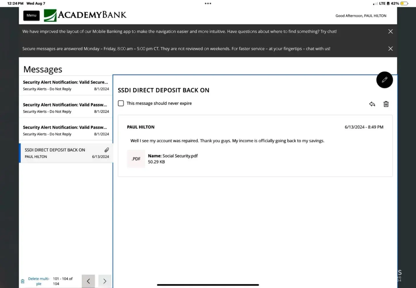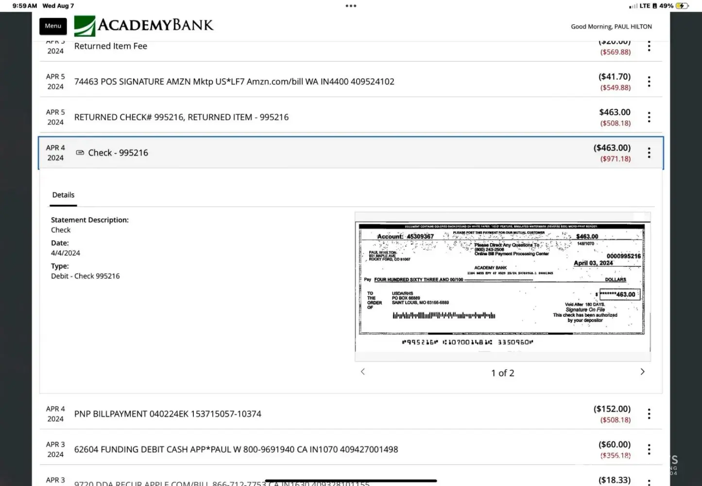 My name is Jimmy Marshall and I have been with academy bank for several years and this has happened almost every month for the past 4 years can you please put a stop to this ASAP I am a disabled veteran trying to get a home for me and my family we are living in our truck.
